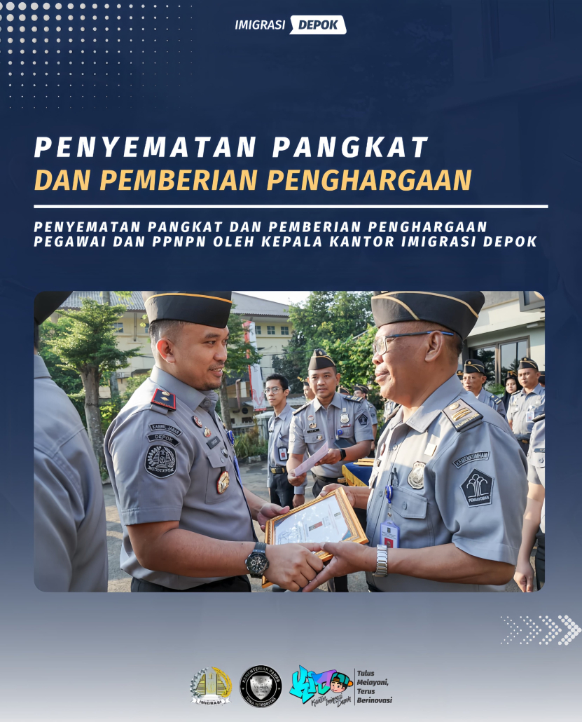 Depok – Kantor Imigrasi Kelas I Non TPI Depok melaksanakan kegiatan apel pagi di bertempat di halaman parkir Kantor Imigrasi Kelas I Non TPI Depok, Senin (15/07/2024). Dalam arahannya, Kakanim Irvan menghimbau kenaikan pangkat dan penghargaan pegawai dan PPNPN terbaik ini agar dijadikan motivasi kepada seluruh jajaran pegawai dan Pegawai Pemerintah Non Pegawai Negeri (PPNPN) untuk selalu bersinergi agar meningkatkan kualitas pelayanan terhadap masyarakat dan senantiasa menjaga integritas dalam bekerja.